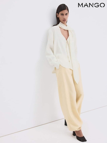 Mango Cream Scarf Detail Button Up Blouse