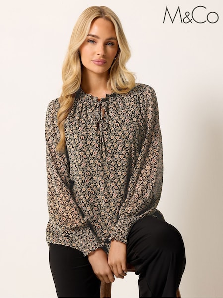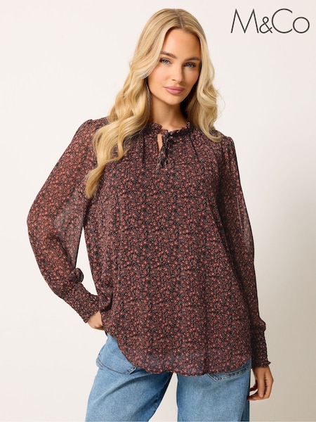 M&Co Brown Short Sleeve Notch Neck Shirt