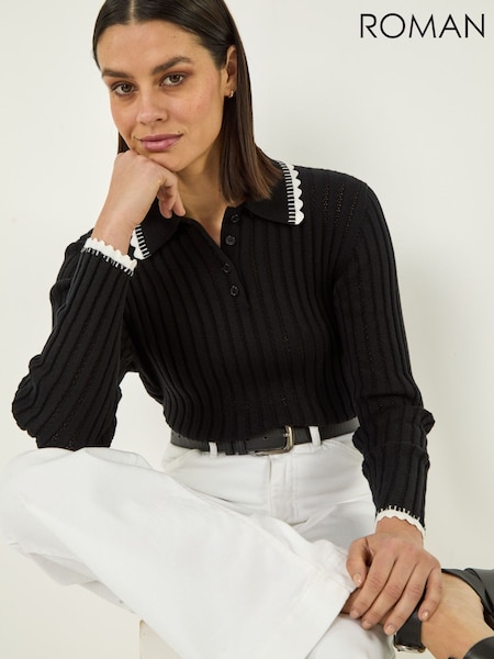 Roman Orange Daisy Sequin Embroidered Knit Top
