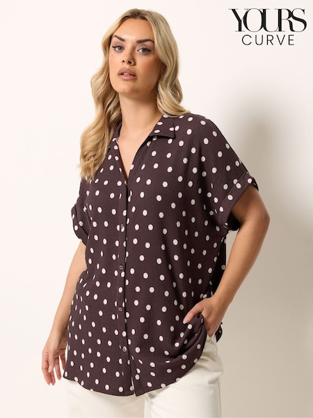 Yours Curve Brown Long Sleeve Linen Blend Shirt