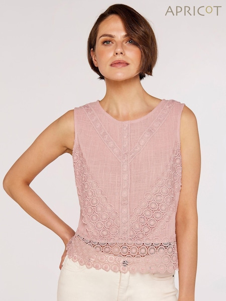 Love & Roses Blush Pink Petite Floral Lace Trim Cap Sleeve Blouse