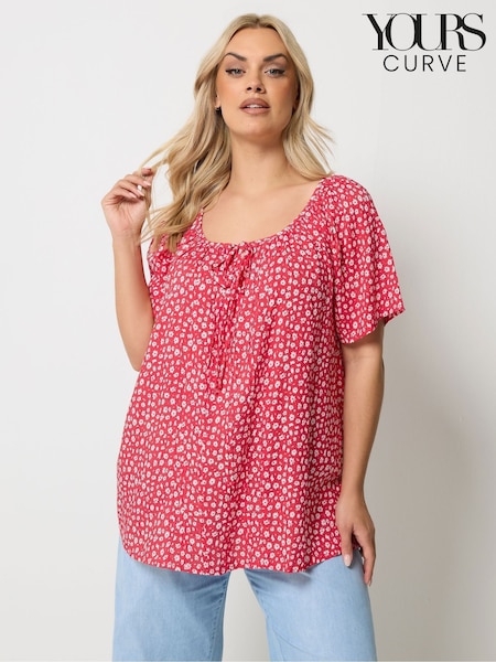 Yours Curve Red Boho Pintuck Blouse