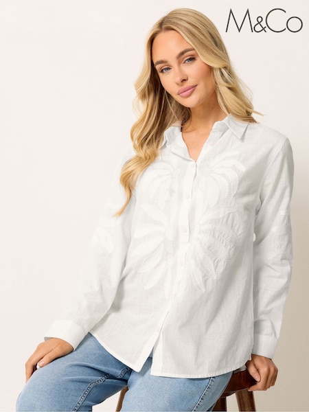 M&Co White Embroidered Long Sleeve Shirt