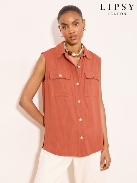 Lipsy Rust Brown Sleeveless Utility Shirt