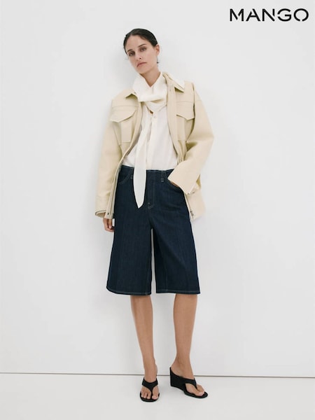 Mango Blue Waist Detail Bermuda Shorts
