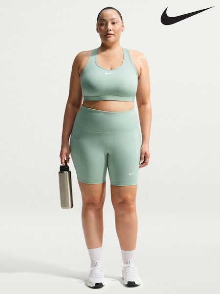 Nike Steam Green Curve One High-Waisted 8" Biker Shorts with Pockets