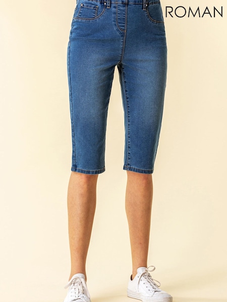 Roman Blue Stretch Knee Length Pedal Pusher Shorts