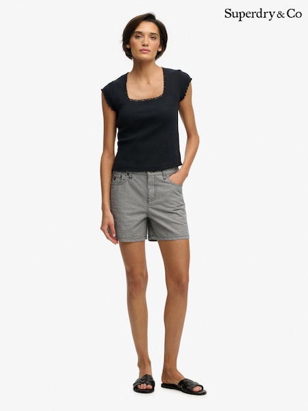 Superdry Navy Blue Stripe Athletic Essential Fold Over Shorts