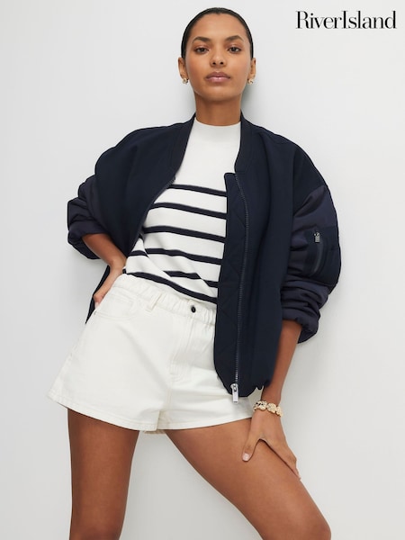 BHOEM Ecru High Rise Contrast Stitch Denim Shorts