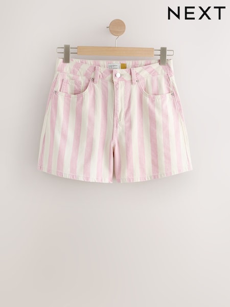 Pink Striped High Rise A-Line Denim Shorts