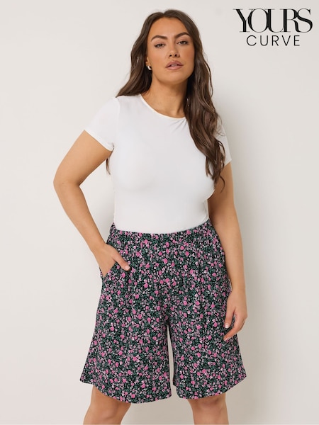 Yours Curve Black Floral Jersey Crinkle Shorts