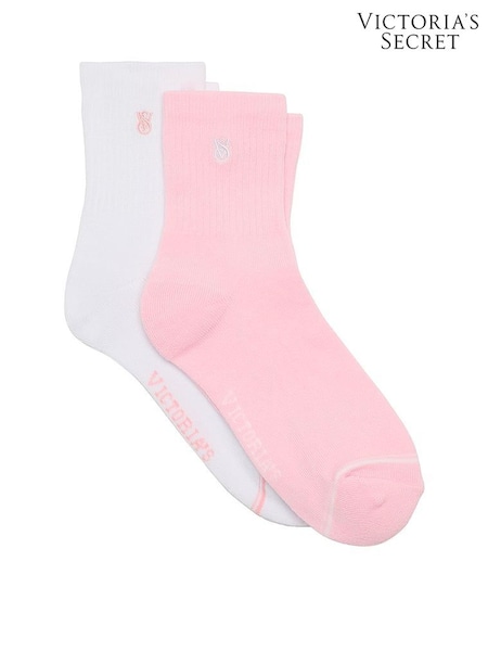 Victoria's Secret White & Pink 2 Pack Quarter Socks