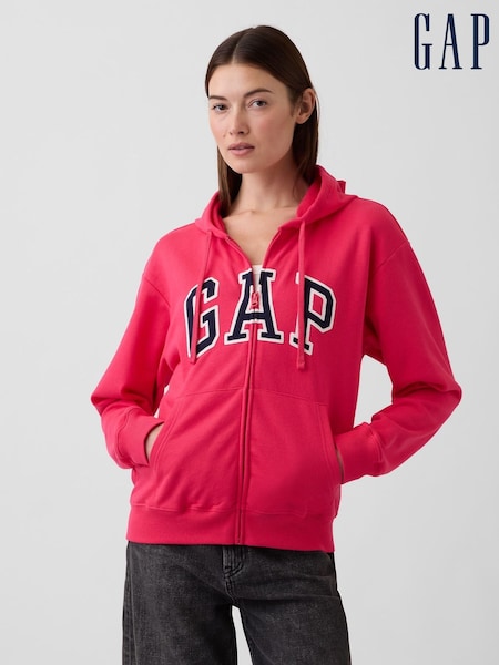 Gap Pink Relaxed Gap Logo Zip Hoodie