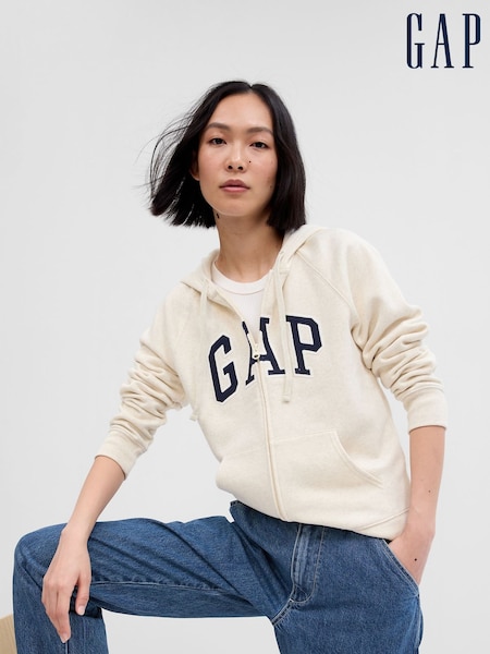 Gap Cream Logo Fleece-Lined Zip Up Hoodie