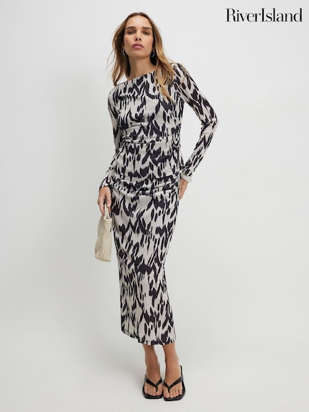 River Island Cream Long Sleece Abstract Print Top