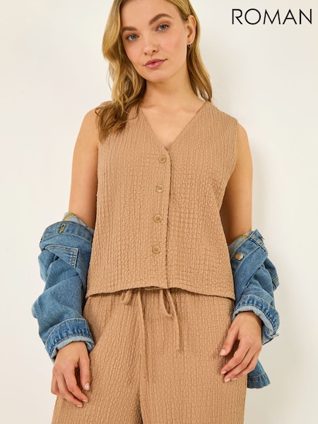 VILA Brown Asymmetric Wrap-Over Button Detail Waistcoat