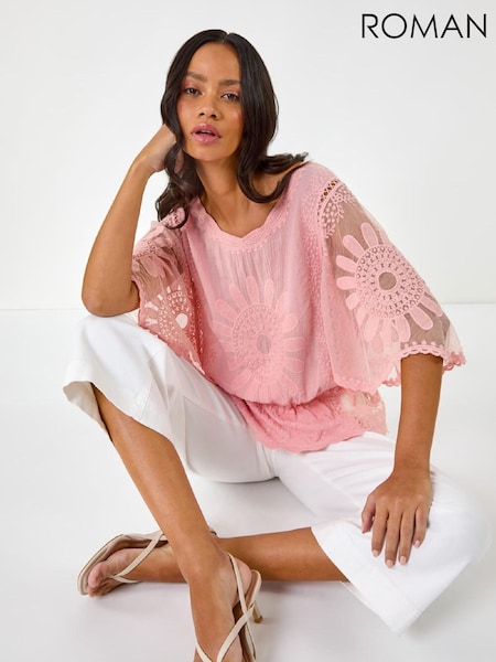 Gina Bacconi Blue Kirsten Embroidered Blouse With Scallop Detail