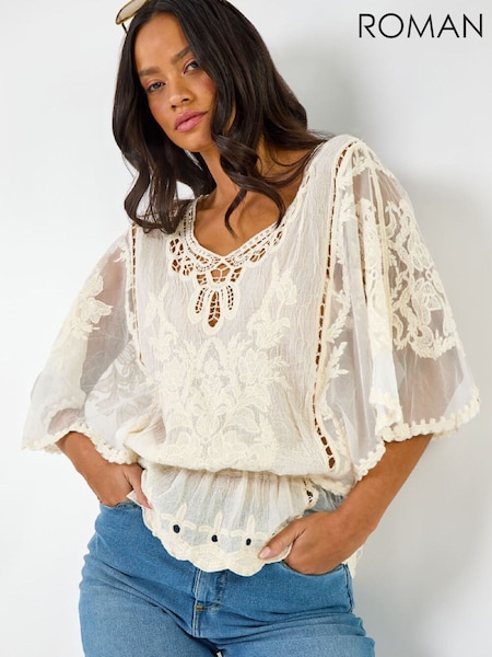 Love & Roses Ivory Lace 3/4 Sleeve Bow Detail Blouse