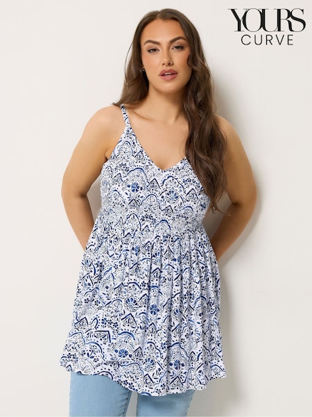 Blue/Cream Asymmetric Hem Lace Cami Top