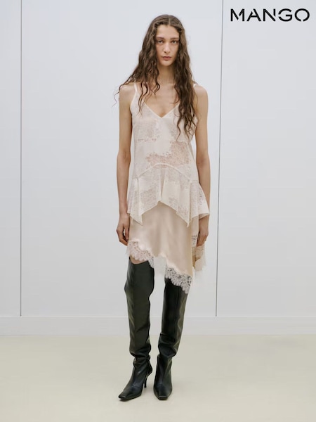 Mango Cream Sheer Lace Thin Strap Camisole