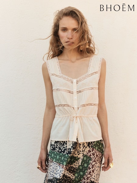 BHOEM Peach Pink Embroidered Cotton Lace Trim Top