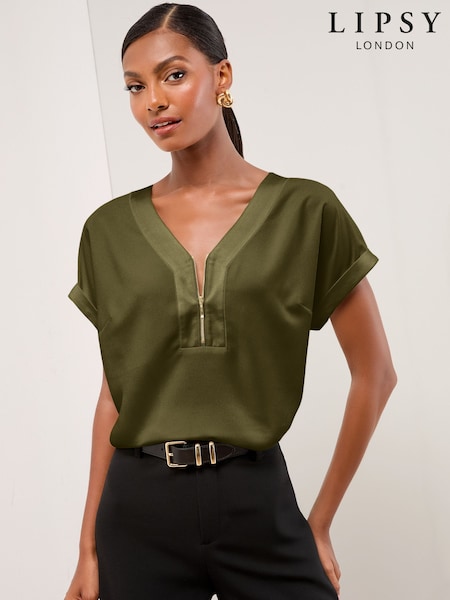 Lipsy Khaki Green Zip Front Utility T-Shirt