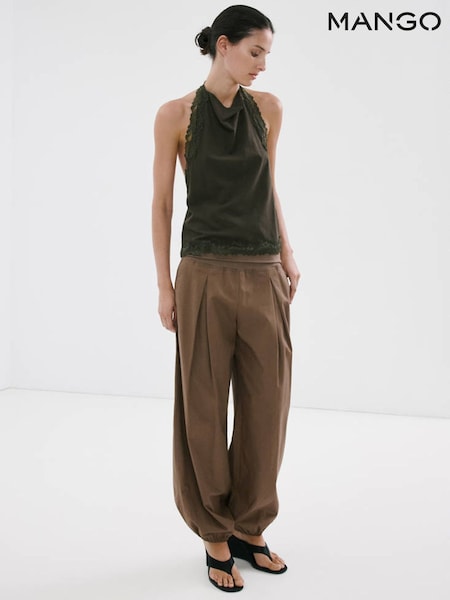 Mango Grey Lace Hem Short Sleeve Knitted Top