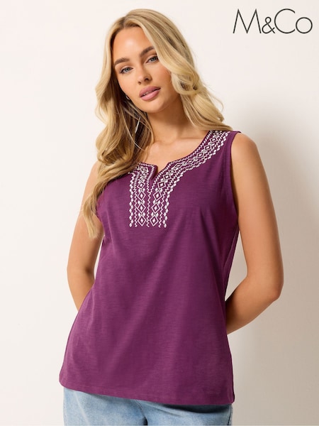 M&Co Purple Petite Dobby Short Sleeve Blouse