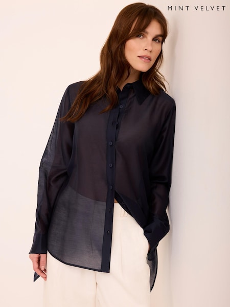 Mint Velvet Blue Longline Tie Back Shirt