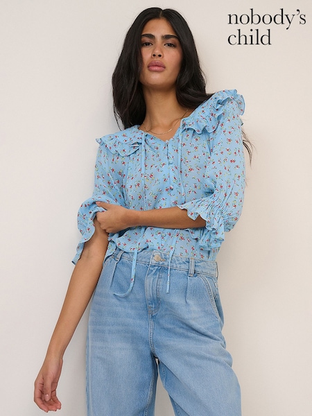 Nobodys Child Blue Aliyah Shorts Sleve Top