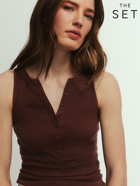 The Set 5 Pack Henley Tank Tops Navy Blue/Burgundy/Brown/Pink/Cream