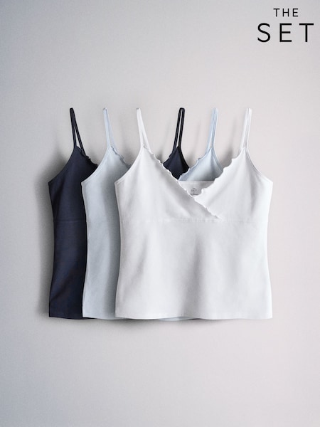 The Set 3 Pack Frill Cropped Camis Navy/Pale Blue/White
