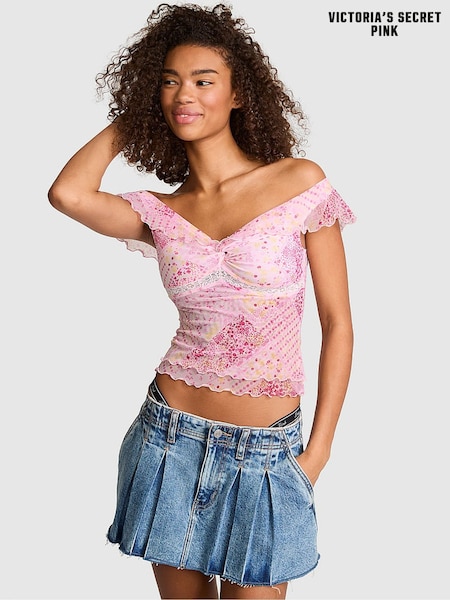 Victoria's Secret Pink Pink Floral Print Off The Shoulder Top