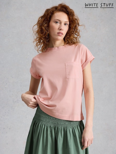 White Stuff Pink Nelly Notch Neck T-Shirt