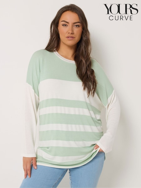 Yours Curve Green Bold Stripe Top