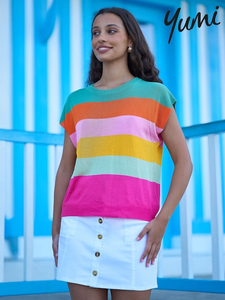 Yumi Green Block Stripe Relaxed Knitted Top