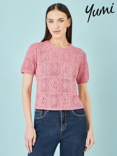 Yumi Pink Cotton Crochet Knitted Top