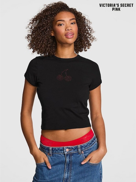 Victoria's Secret PINK Black Cherry Print Retro T-Shirt