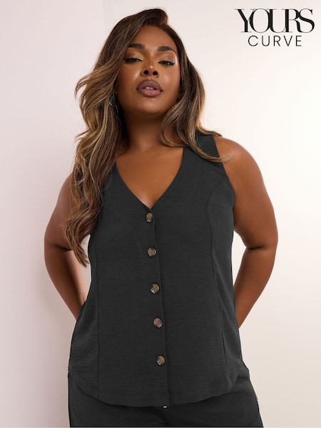 Cotton On Black Sienna Linen Cotton Waistcoat