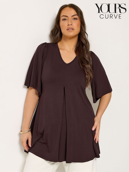 Yours Curve Brown Pleated Front Angel Sleeve Top