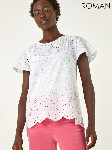 Roman White Broderie Short Sleeve Top