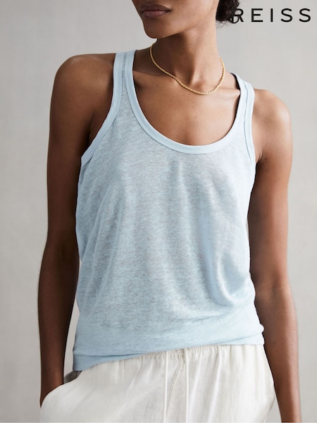 Reiss Blue Taloulah Linen Crew Neck Vest