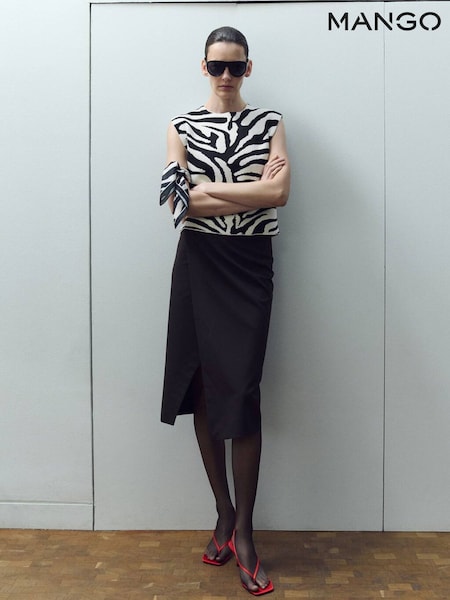 Mango Black Zebra Print Shoulder Pad Sleeveless Top