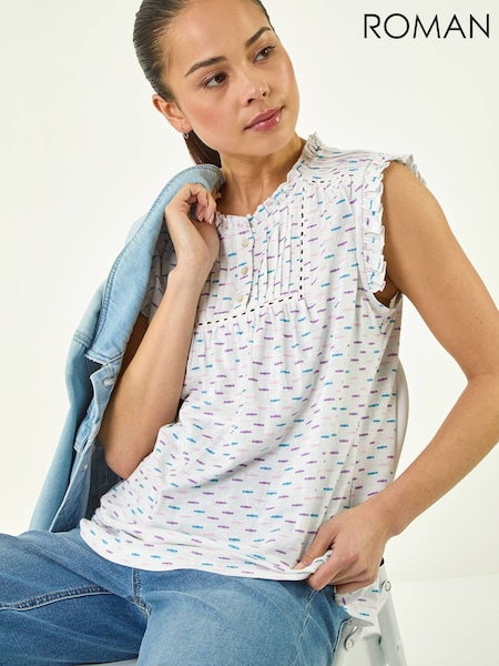 FatFace Meg Chocolate Brown Petite Cutwork Shell Top