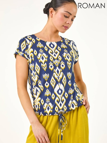 Love & Roses Black Animal Petite Print Notch Neck Hardware Blouse