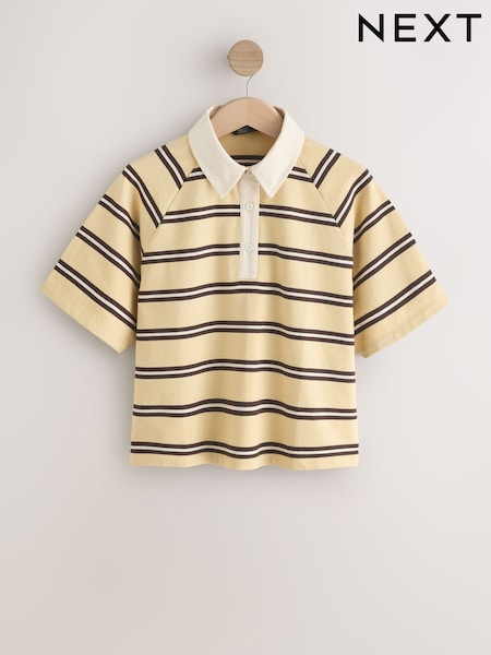 Yellow/Brown Stripe Short Sleeve Collared Rugby Polo Top