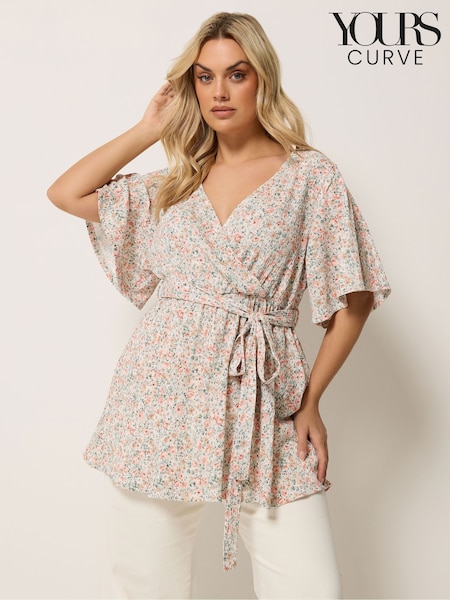 Yours Curve Natural Limited Floral Beaded T-Shirt