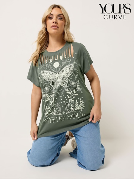 Yours Curve Green Placement Laser Cut T-Shirt