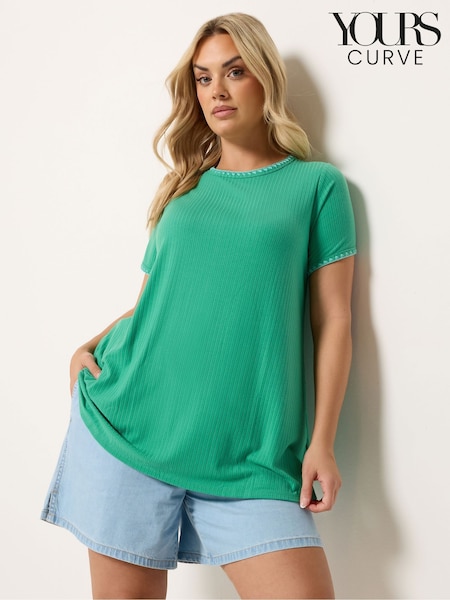 Yours Curve Green Ribbed Whip Stitch Swing T-Shirt