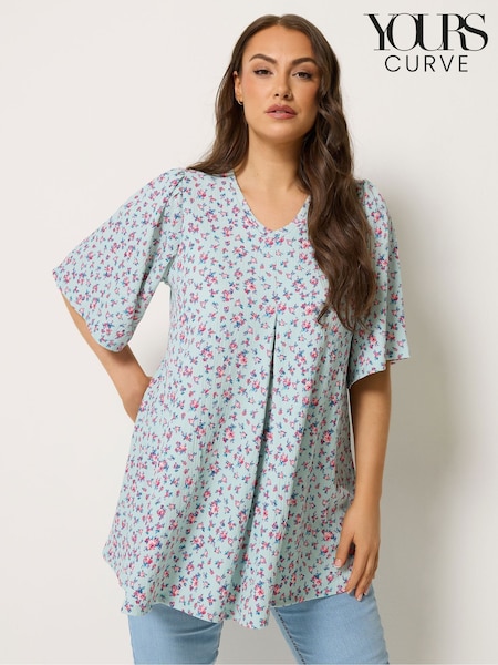 Yours Curve Blue Textured Pleated Front Swing Top